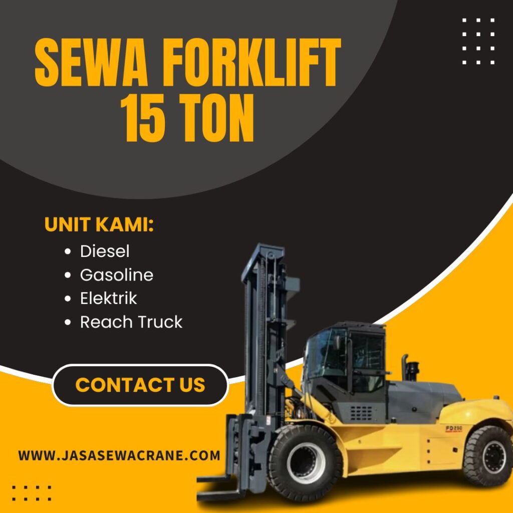 Dapatkan layanan sewa forklift 15 ton yang handal dan aman untuk kebutuhan operasional Anda. Jangan ragu untuk menghubungi kami untuk konsultasi lebih lanjut dan penawaran harga terbaik. Tim kami siap membantu Anda dengan solusi sewa forklift yang sesuai dengan kebutuhan bisnis Anda. Segera pesan dan tingkatkan efisiensi kerja Anda hari ini!